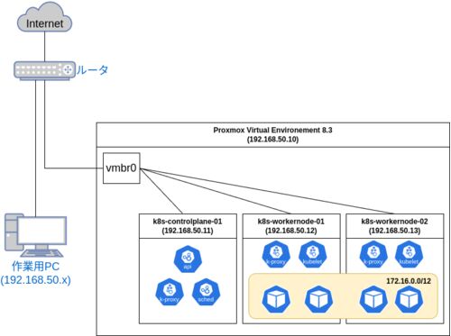 お正月なので 使っていないPCにProxmoxを入れて、おうちKubernetes環境を構築しました。 余ってたPCにProxmox入れておうちk8s環境ができたので喜びの舞 pic.twitter.com/Yh03sp2wek— ser1zw (@ser1zw) January 2, 2025 構成 Proxmox上の仮想マシン(Ubuntu)…